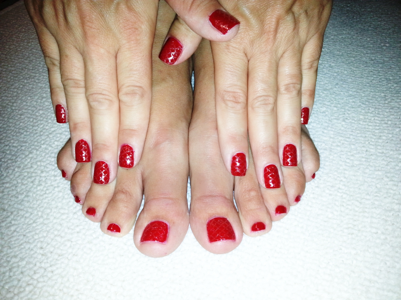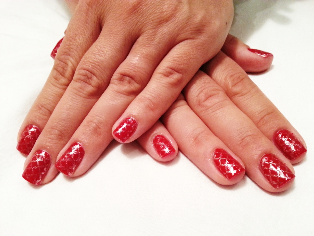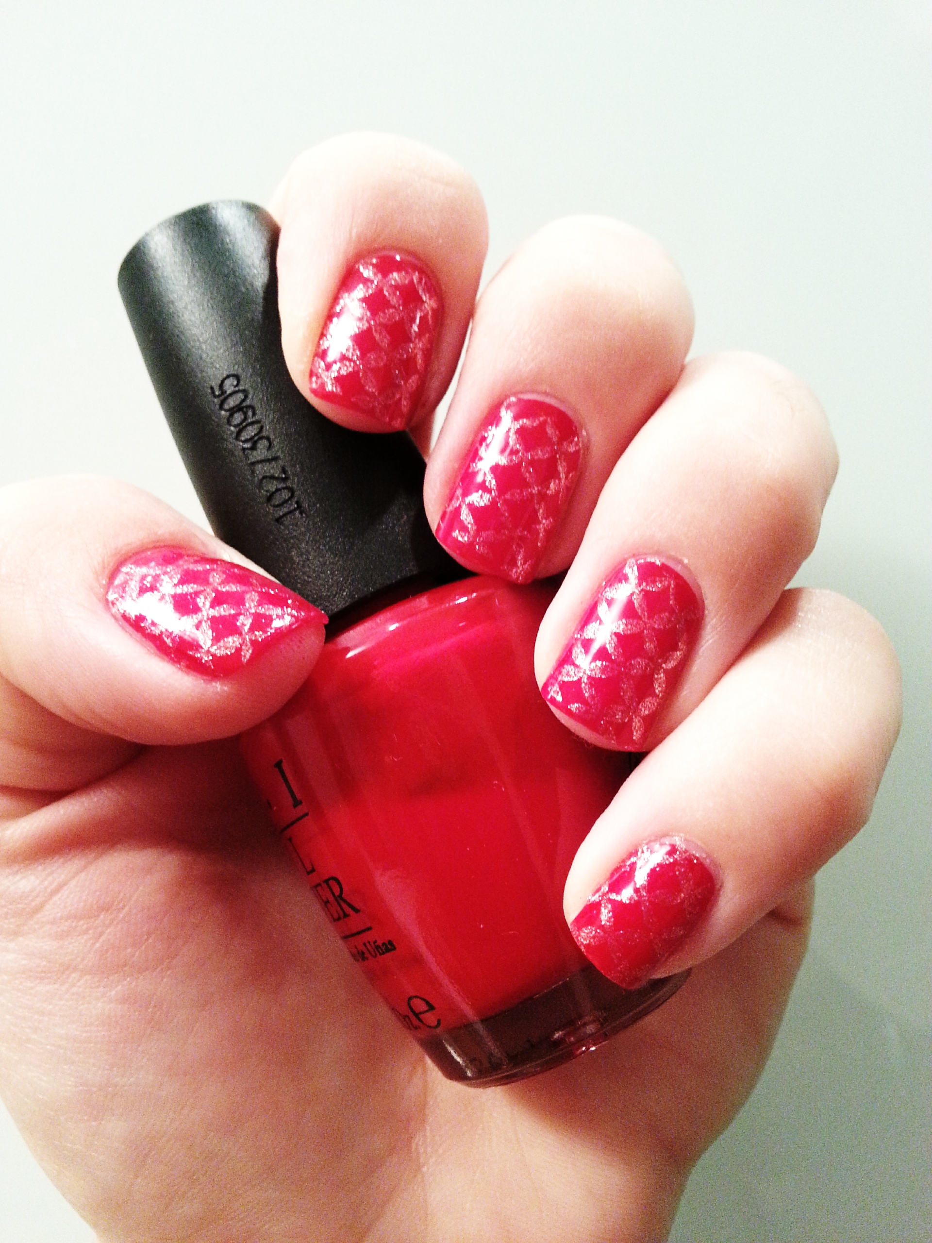 Aquesta setmana torno a utilitzar el vermell com a base d’una manicura que porta un estampat daurat.