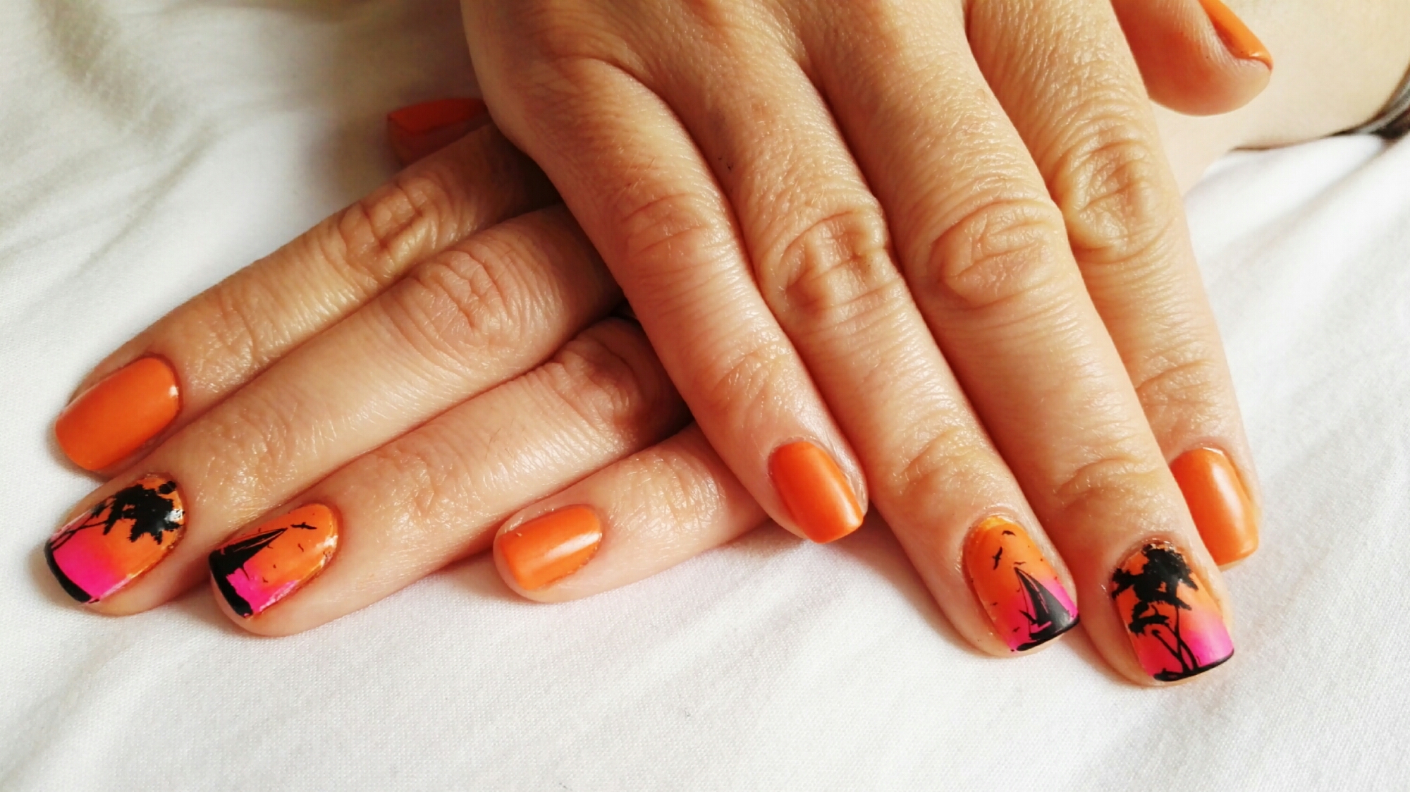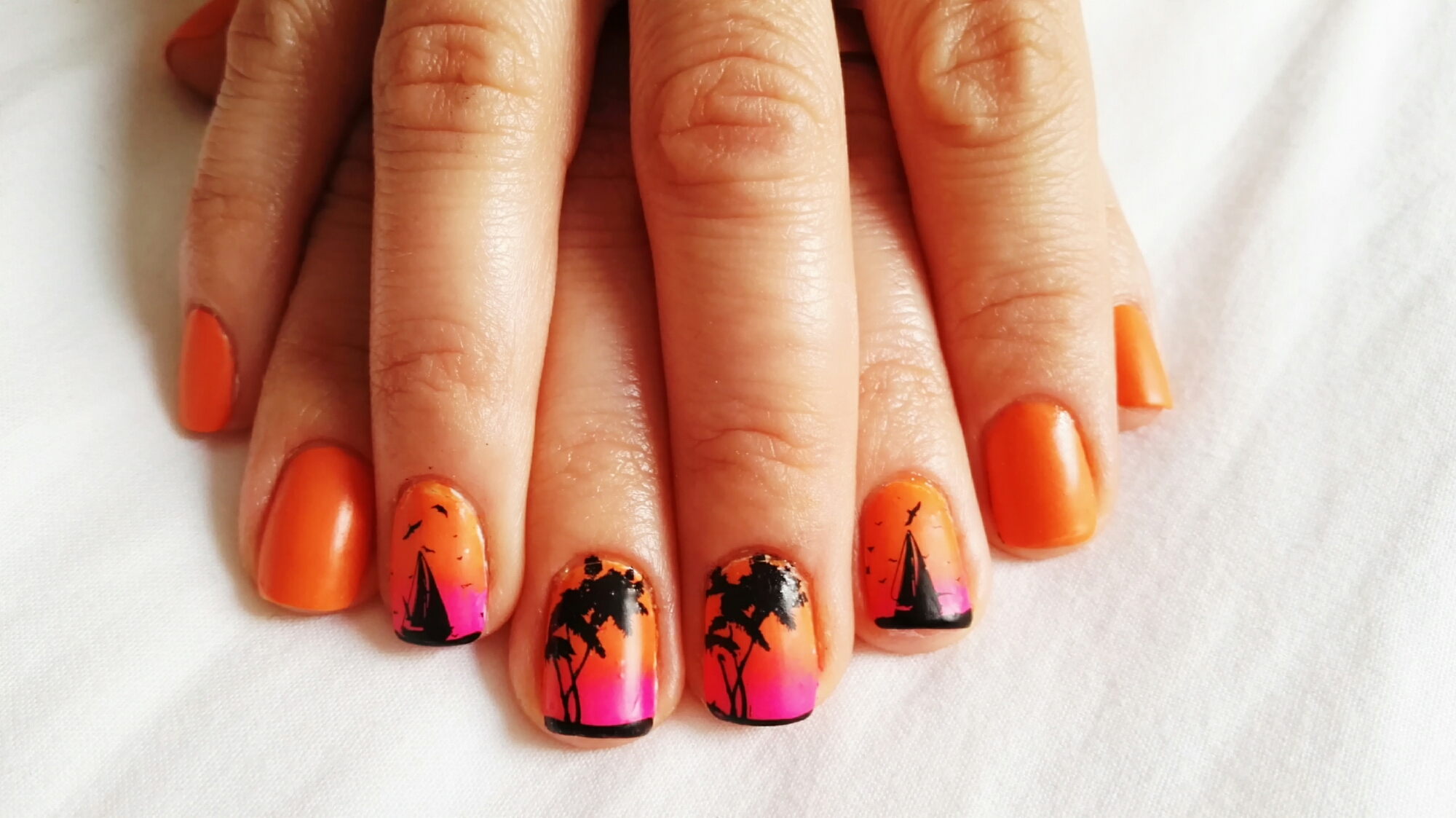 Today, orange is the main colour, with a little touch of gradient on my middle and ring fingers.