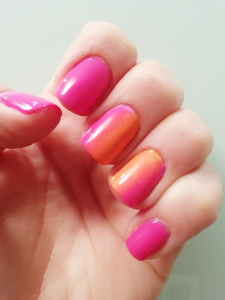 Avui em sento surfera, així que he escollit les flors hawaianes com a protagonistes de la manicura d’aquesta setmana. Els dibuixos estan estampats en negre sobre un rosa fluorescent, que es fon en degradat amb el carbassa als dits mig i anular.