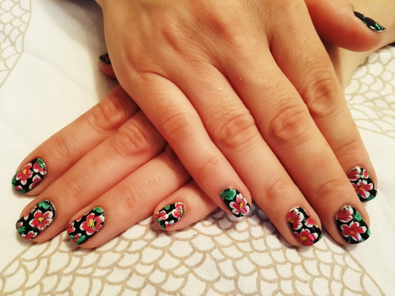 Yo, ya veis que muy floreada. Me he comprado unas chanclas y me gusta tanto el estampado que me ha servido de inspiración para mi última manicura.