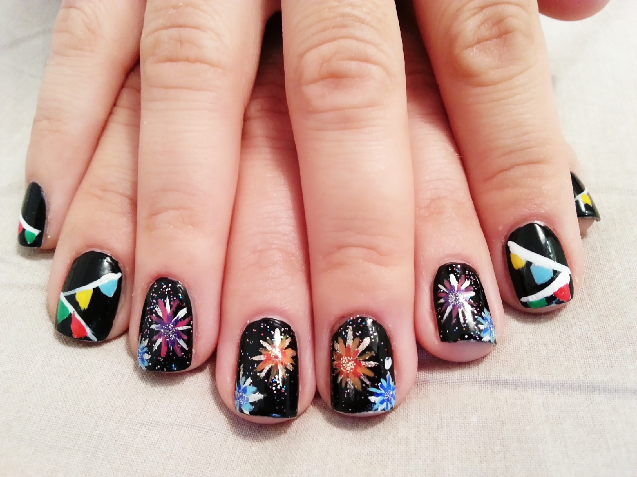 Las fiestas del pueblo son muy típicas en verano y, recientemente, hemos celebrado las de Manresa, mi ciudad. Uno de los actos principales son los fuegos artificiales, así que me han servido de inspiración para mi última manicura.