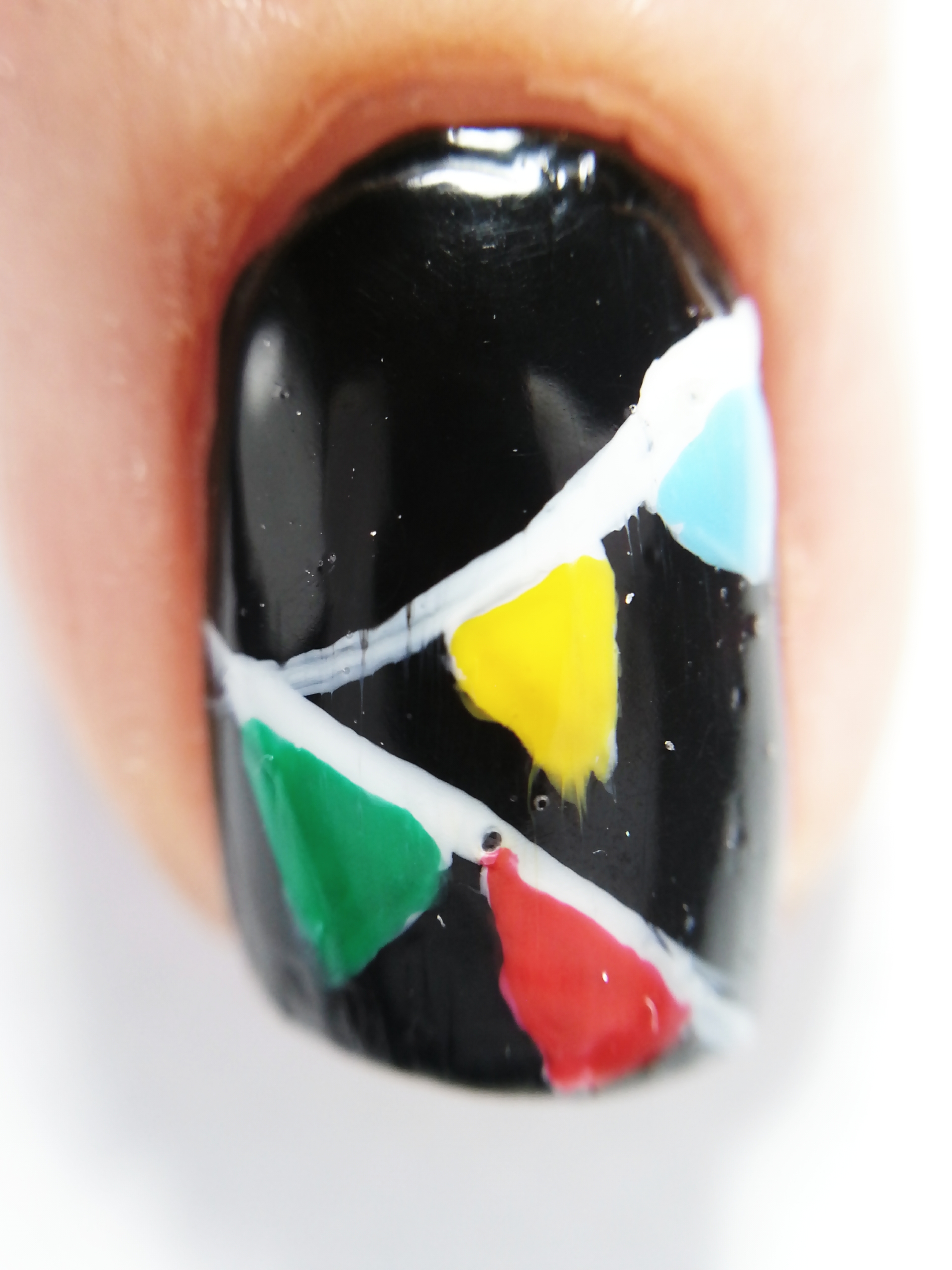 Als dits mig i anular, palmeres de colors amb un toc de purpurina. I a la resta de dits, banderoles. Què us sembla? Us agrada?