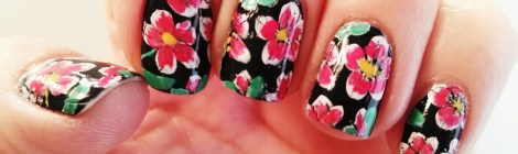 Si t’agraden els estampats de flors, aquesta manicura és ideal per a tu / Uñas con flores perfectas para las amantes de los estampados veraniegos / Summer flowers stamped on dark polish.